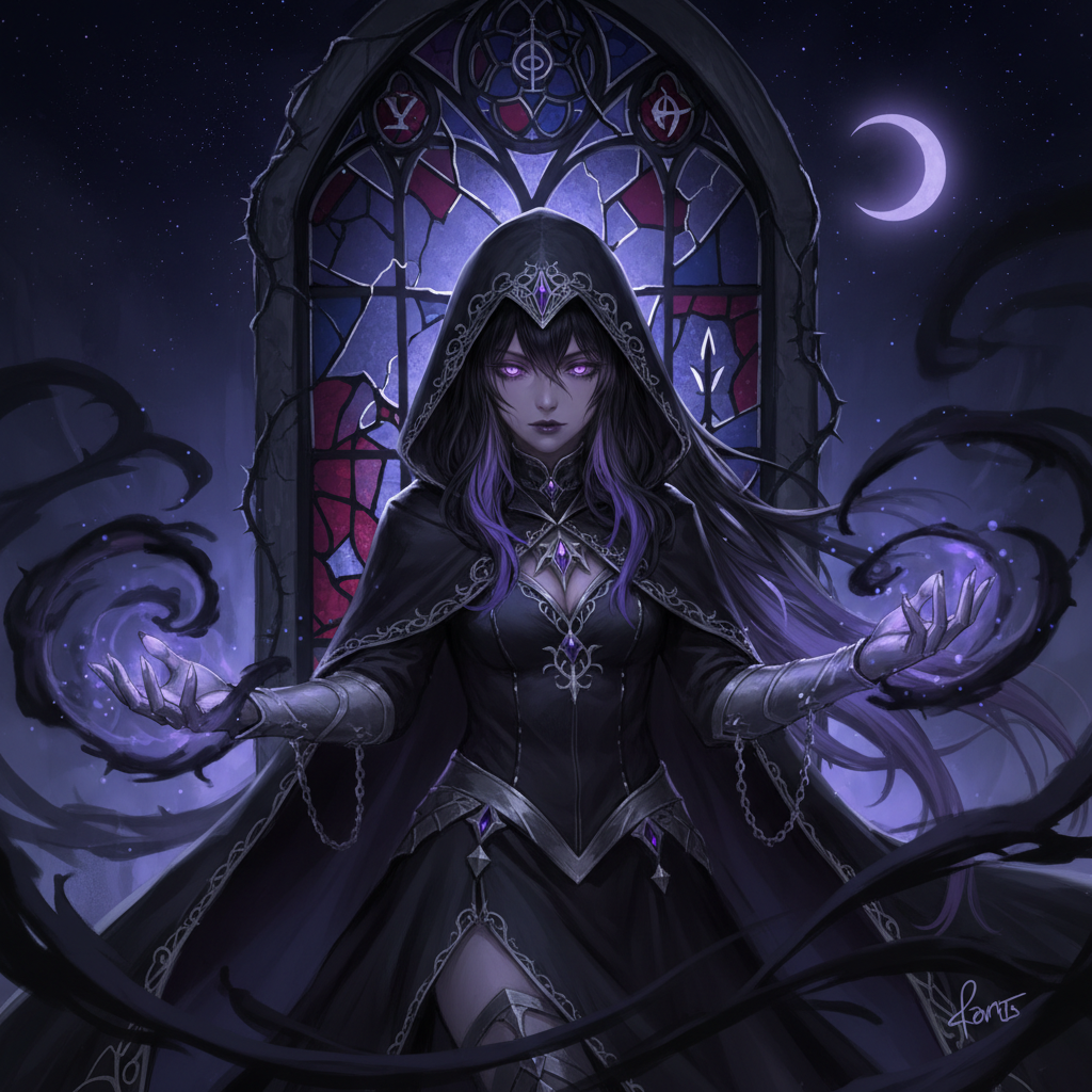创建神秘的暗黑奇幻动漫头像。哥特式风格,暗黑美学,阴森气氛和超自然元素。